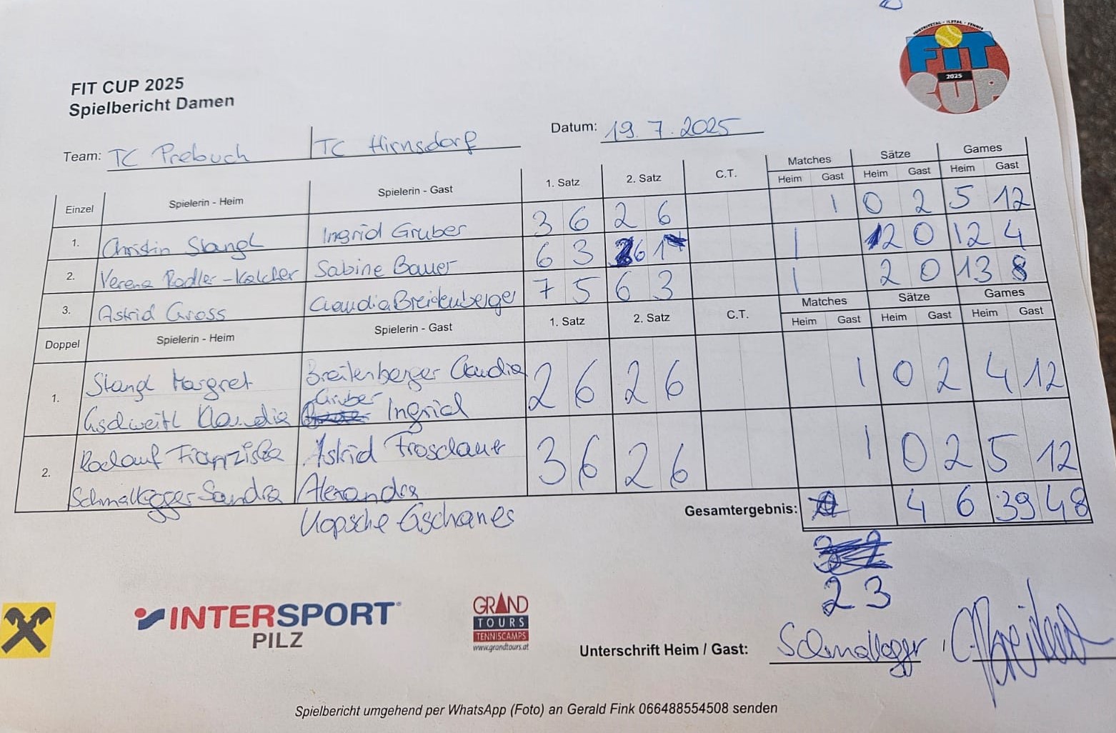 TC Prebuch vs TC Hirnsdorf 28. März 202521. Juli 2025 gerald Kalender Tabelle 19-07-2025 5. Runde TC Prebuch TC Hirnsdorf 23 Überblick Fotos Spielstatistik 4 Sätze 6 39 Games 48