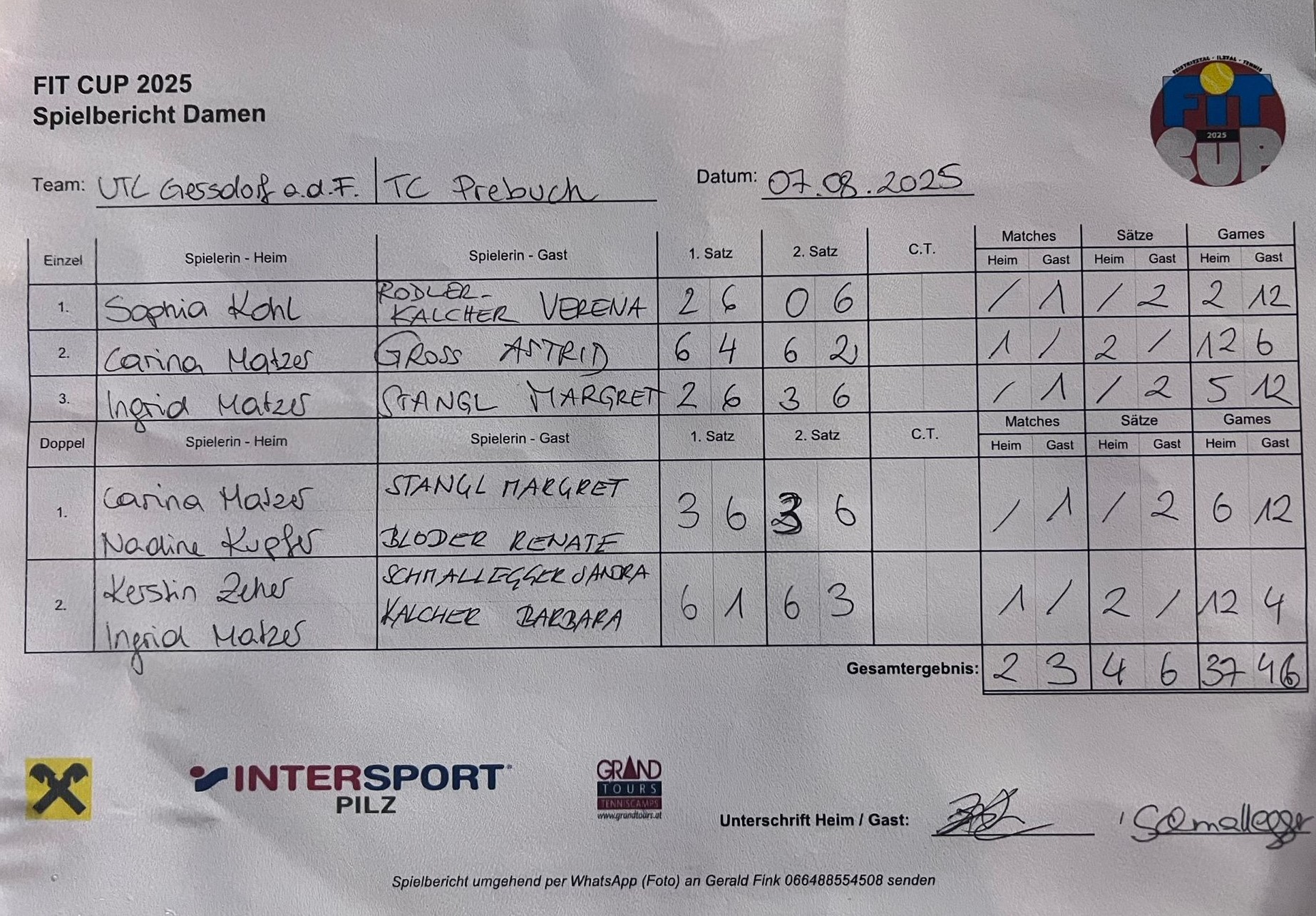UTC Gersdorf a.d.F. vs TC Prebuch 23. Juli 202512. August 2025 gerald Kalender Tabelle 07-08-2025 Spiel um Platz 5 UTC Gersdorf a.d.F. TC Prebuch 23 Überblick Fotos Spielstatistik 4 Sätze 6 37 Games 46