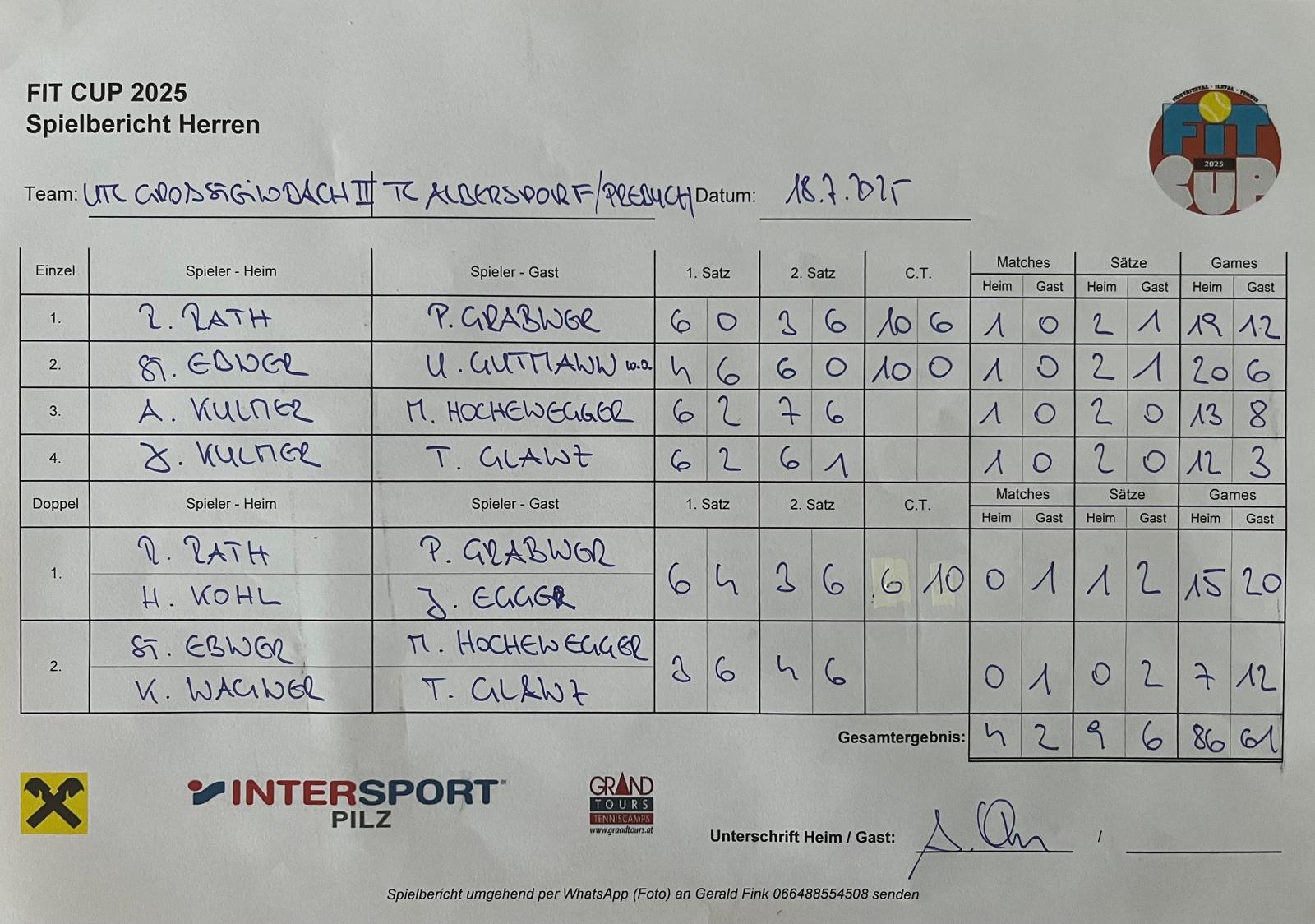 UTC Großsteinbach II vs SG Albersdorf-Prebuch 17. Juli 202521. Juli 2025 gerald Kalender Tabelle 18-07-2025 Spiel um Platz 3 UTC Großsteinbach II SG Albersdorf-Prebuch 42 Überblick Fotos Spielstatistik 9 Sätze 6 86 Games 61